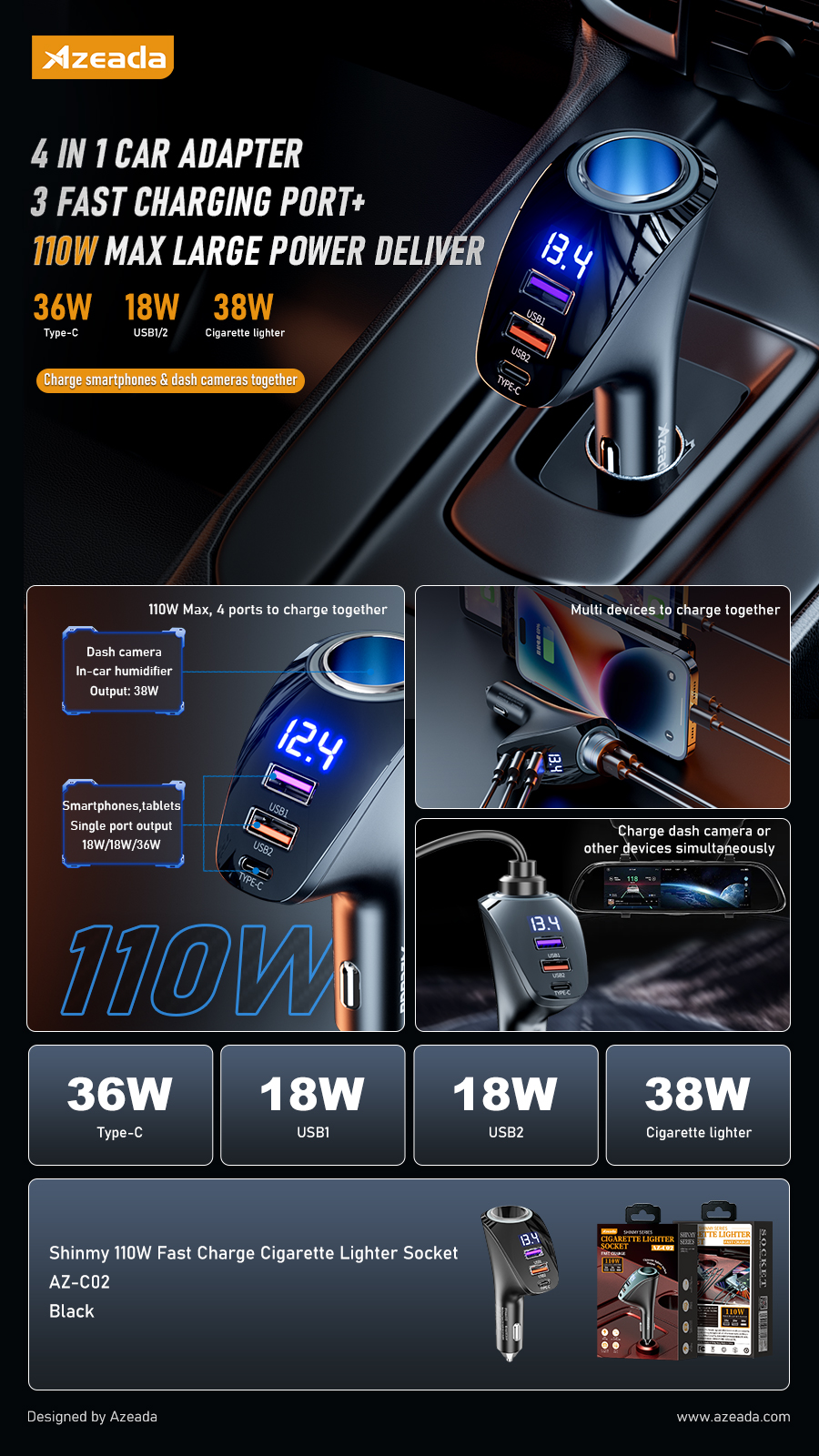AZ-C02 Azeada Shinmy快速充电点烟器插座
