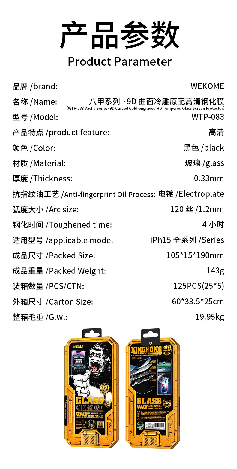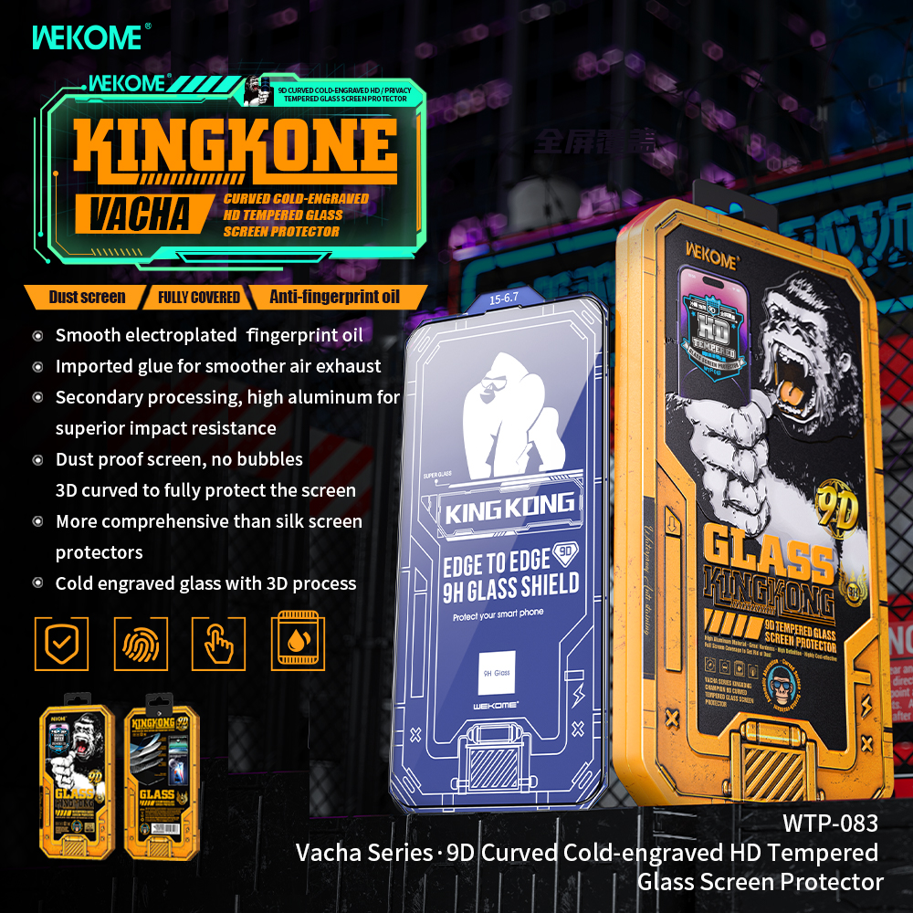 WTP-083 Glass Screen Protector Vacha Series · 9D Curved Cold Engraving (HD Tempered)