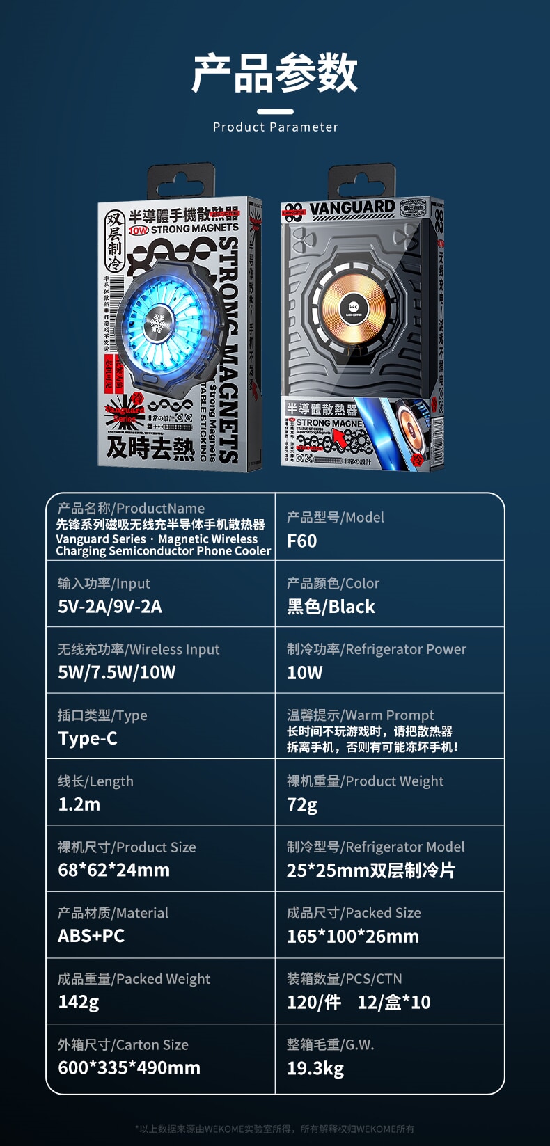 F60 magnetic wireless charging semiconductor phone cooler